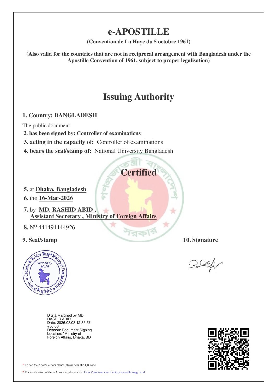 সনদপত্র/নম্বরপত্র/একাডেমিক ট্রান্সক্রিপ্ট/ডকুমেন্টস