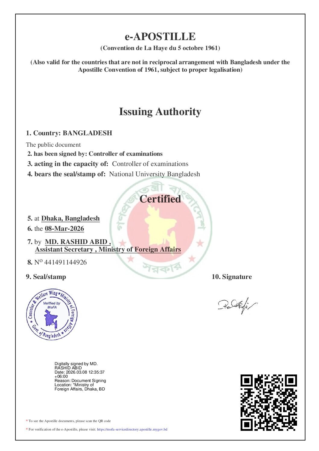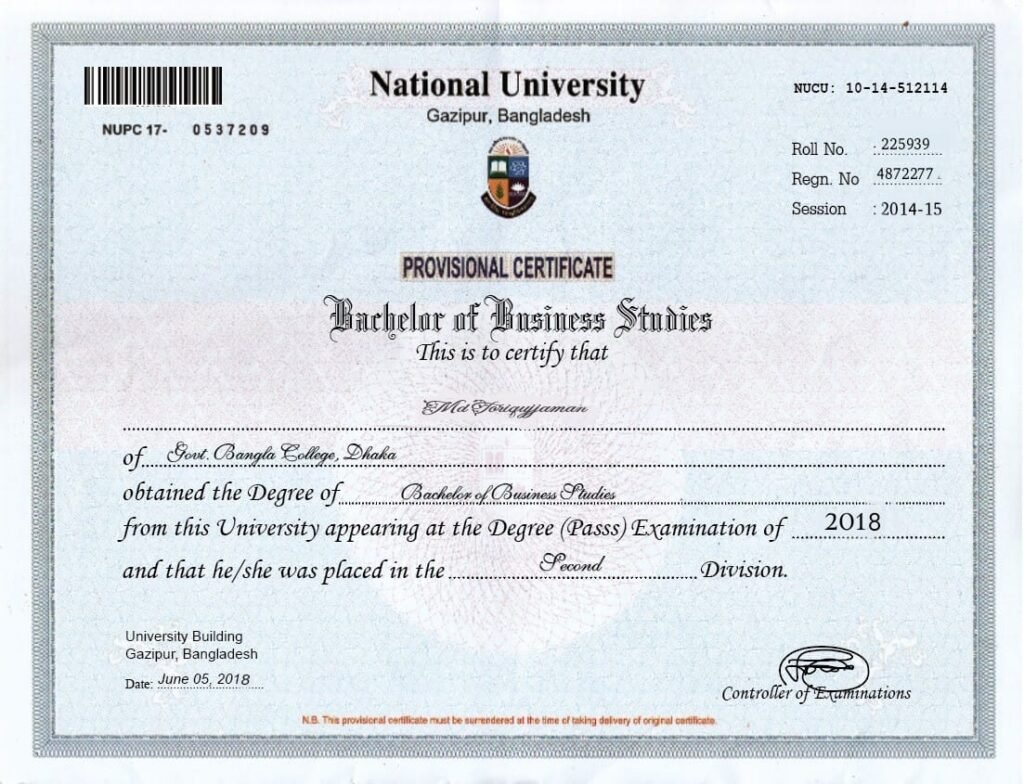 সনদপত্র/নম্বরপত্র/একাডেমিক ট্রান্সক্রিপ্ট/ডকুমেন্টস